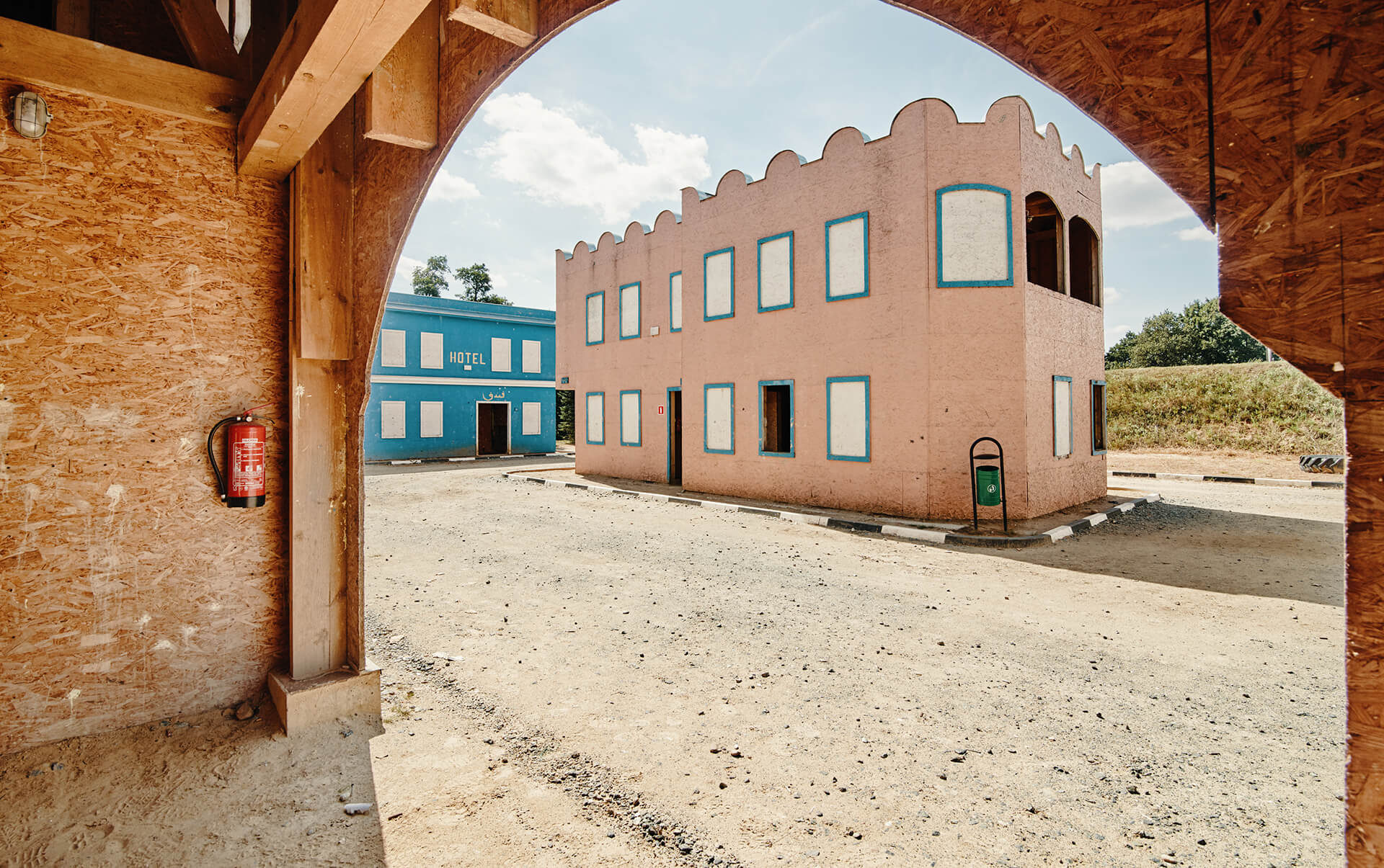 Eine spezielle Gebäudeschießanlage, die Kurz- und Langwaffenaktivitäten ermöglicht mit simulierter Munition FX. Die Innenräumkönnen verändert werden, um spezielle Schusswechsel Szenarien zu simulieren u.v.m.